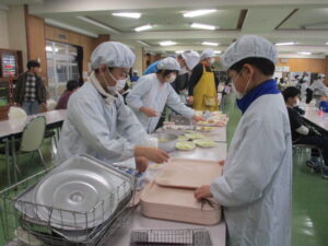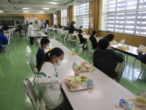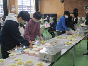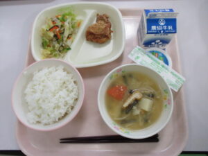 本日の給食は、ごはん、わらびのみそ汁、塩から揚げ、春キャベツの即席漬け、牛乳、すだちゼリーです。今日は、中学3年生最後の給食です。メニューはリクエストにお応えして、「からあげ」にしました。そして、中学校から巣立っていく言葉にかけて、「すだちゼリー」をつけました。大人になって、おいしい食べ物をたくさん知っても、給食で食べた味は、思い出として残ります。