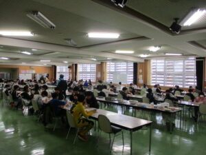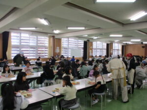 本日の給食は、ごはん、カニとわかめのスープ、ごま焼肉、韓国のりナムル、不知火、牛乳です。今日は、パンチの効いたメニューがそろいました。ごま焼肉は、コチュジャンという甘じょっぱい調味料が味の決め手になっています。そして、ナムルには、焼肉と相性の良い「韓国のり」を入れてみました。ごま油の風味が食欲をそそります。今日の果物は、「しらぬい」です。ぷりぷりでジューシーなのが特徴のオレンジです。