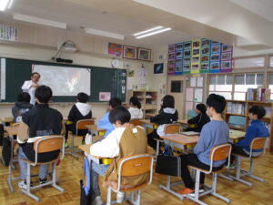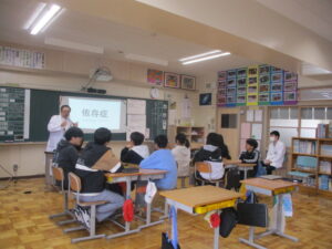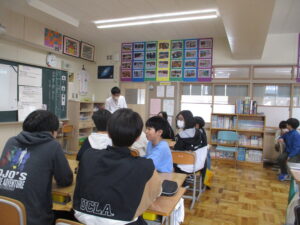 小出病院から先生をお招きし、6年生が実施しました。様々な依存症のデメリットや危険性の話を聞いたり、聞いたことを基にグループで話し合ったりしました。「やってしまっている人が弱いわけではなく、最初に手を付けないこと『誘惑に負けない力が大切』なこと」を学びました。