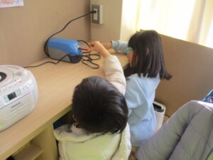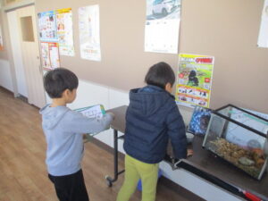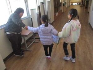 すもんこども園の年長児のみなさんが学校に来てくれて、1年生と学校探検を行いました。校内の様々なところを見て回り、小学校のイメージがもてたかなと思います。