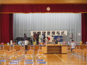 午後は、4・5年生が卒業式準備を行いました。一生懸命に取り組んでくれ、卒業式の準備が整いました。