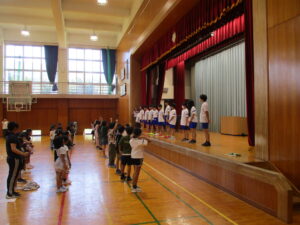 明日の大会に向けた壮行会を実施しました。4年生が中心となって企画・運営をしてくれました。1~5年生、職員の思いも届けることができました。明日は、思い切り取り組んできてほしいです!