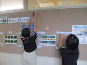 保健室前の掲示板がリニューアルです。ハロウィンにちなんだ季節感ある掲示や目の健康に関する掲示などにぎやかです。子どもたちが一生懸命に貼り変えていました。ご来校の際にはぜひお立ち寄りください。