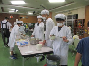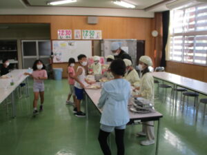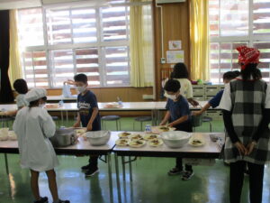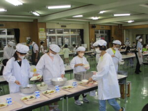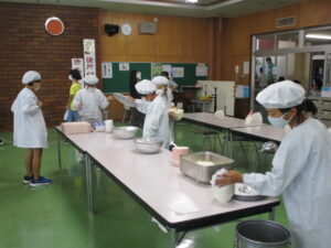 9月の最終日も新メニューです。鶏肉とちくわのカレー炒めは、ちくわを先に油で揚げ、鶏肉と玉ねぎを炒めて調味料で味付けをしたところに戻して混ぜ合わせるという方法で作っています。甘めな味付けなので、カレー粉以外にも一味唐辛子を入れて、ピリッとしたアクセントをつけました。ごはんが進む味付けなので、ぜひごはんと一緒に召し上がってみてください。本日、給食の写真を撮り忘れてしまいました…。申し訳ありません。