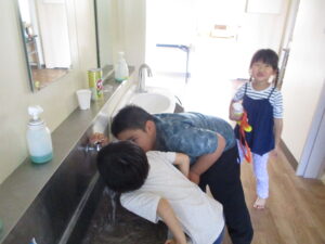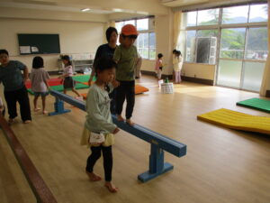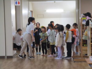 すもんこども園のつき組のみなさんが1年生と交流を行いました。1年生がやり方を教えたり、手を引いて補助したりと、お兄さんお姉さんとして張り切って活動していました。来週は就学時検診です。たくさん学校のことを知り、安心して入学してもらえるよう今後も活動していきます。