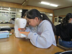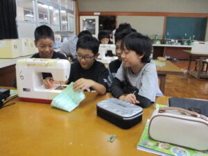 5年生がミシンの学習を行っていました。始まったばかりなので、おっかなびっくりといった様子でしたが、慎重に丁寧に操作をしていました。今後はミシンを使っての制作になっていきます。