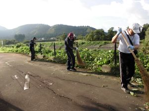 9月27日(土)午前7:00から井ノ口新田・大下コミュニティ協議会の環境整備活動に参加しました。生徒は地域振興センターから佐梨川に沿った堤防道路(通称:美ロードりんりん)の除草補助やごみ拾いに取り組みました。今回は新人大会前の練習試合や地域クラブの発表会等と重なり、中学生の参加は10名でした。しかし、それぞれに分担された場所を力強く丁寧に作業する姿に、逞しさが感じられました。今後もCS(コミュニティ・スクール)の活動に率先して参加してほしいです。