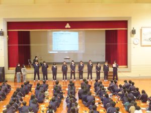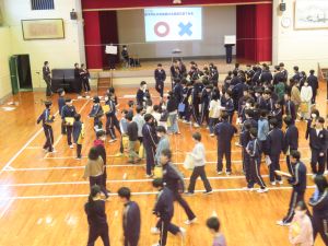 本日湯之谷小6年生と一緒に「いじめ見逃しゼロスクール集会」を行いました。縦割り班の活動としたため、はじめはアイスブレイクとして○✕クイズを実施。その後、生徒会本部の生徒が5つの事例を紹介し、班ごとに問題点・解決策・予防策について話し合い、結果は発表によりシェアしました。最後に「湯之谷いじめ見逃しゼロ誓いの言葉」を全員で読み上げて、お互いにかけがえのない仲間であることを確認しました。