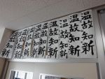 国語科では冬休み前に書写の時間として、書初め作品の練習をしました。冬休みの課題としての取組を経て、各教室前の廊下に展示しました。得手不得手はあると思いますが、努力の成果を示すことは大切です。また、同級生や他学年の生徒の発表や展示から気づくことや学ぶことも大切です。何よりもじっくり見てると、その人らしい味わいが感じられます。こんな仲間と一緒の時を過ごしている・・・そんなぬくもりが感じられます。