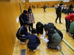 本日の生徒集会は「校内謎解きツアー」でした。全校生徒が縦割り10チームに分かれ、校内10か所のチェックポイントを巡りました。最高10問の謎(難問?奇問?だじゃれ?)に挑戦するという企画。誰もが制限時間、難易度、混みあうチェックポイントなど、様々な要因に翻弄されました。しかし、そこには逆境にめげず、主体的に推理し、ひらめき、答えをひねり出そうとする姿がありました。また、対話により真相に迫ろうとする姿もありました。謎は一層深くなった気もしますが、全校生徒で協働しながら楽しむ姿が印象的でした。