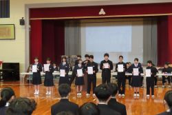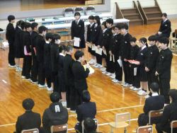 本日第2回生徒総会を実施しました。議長団の的確な進行により、議事の報告と承認が円滑に行われました。また、どの学年からも多くの生徒が代表質問に挑戦。質疑応答を通じて活動への理解が深まるとともに、身近な問題として捉えることができたようです。後半は新生徒会長が、次年度の本部役員や各種委員会の委員長を委嘱。最後のファイルを手渡す引継式は、湯之谷中学校の伝統というバトンがつながっていくように感じられました。