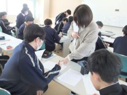 本日、宮柊二記念館長の 林 あゆみ 様とコスモス短歌会より2名の会員の方を講師にお迎えし、3年生が卒業短歌づくりを行いました。講義では、作り方・鑑賞の仕方それぞれの楽しみ方を教えていただきました。その後、生徒はこれまでの出来事を振り返り、思い思いに創作を始めました。推敲から完成までは次の授業になりそうです。