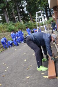 11月7日(金)の6時間目に全校で環境整備作業を行いました。生徒と保護者が協力して校舎周辺の落ち葉を集めたり、側溝の泥上げ作業を学年ごとに分担して実施しました。たまっていた落ち葉や泥を片付けるとと学校全体がすっきりしました.また、保護者のボランティアをお願いして体育館の冬囲いも行い,冬に備えた準備も進みました。