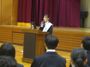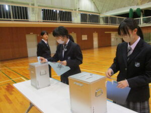 2日(火)に選挙管理委員会の運営の下で、次年度生徒会役員選挙の立会演説会と投票を実施しました。