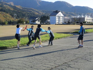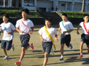 生徒はたすきをつなごうと一生懸命走り、そのランナーを大声で応援しました。最終となったアンカーには途中から何人もの生徒が並走し、一緒にゴールしました。とても清々しい気持ちになりました。
