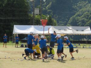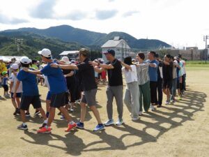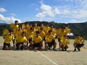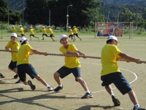 今年度のスローガン「煌~主人公は俺たちだ」の具現化に向けて、実行委員や応援・パネル・競技の各リーダーが中心となり、全校が一丸となって取り組みました。その姿は眩しく煌めき、間違いなく一人一人が主人公でした。また、初めての取組として、コミュニティ協議会の皆様が企画・運営をしてくださり、PTA・地域コラボ種目を実施しました。こども園児や小学校児童保護者、地域の皆様から多数参加していただき、会場が温かい雰囲気に包まれました。