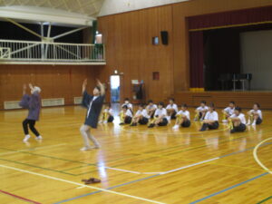 昨日の2年生に続いて、1・3年生の地域芸能練習も始まりました。
