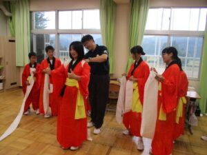 1年生は、大栃山伝統芸能保存会や魚沼市子ども課の皆様から「弘大寺」を教えていただきました。初日から衣装を着させていただいたことで、練習にもより気持ちが入りました。