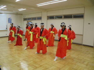 まず、先生方が通して演目を披露されました。流れるような踊りに思わずため息が漏れ、そして自分たちにできるかと生徒は不安顔に。その後、最初の踊りから練習を進めました。ポイントを丁寧に教えてくださるおかげで、少しずつ踊れるようになってきています。